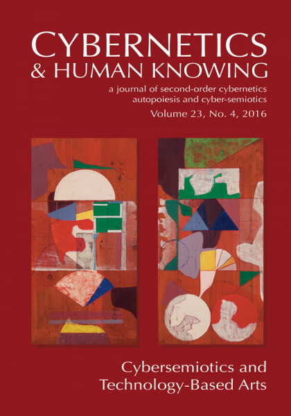 AllVolume 23Issue: 4Year: 2016Table of ContentsForeword: The Mutual Benefits of Cybersemiotics and the Field of Technology-Based ArtsArticles: Interaffectivity: Why interaction is not enoughArt: A First-Person ScienceTransparent Dialogues: On Complex Affective Systems (CAFFS)Reflections on Cybersemiotic Experience in the Meta-EnvironmentColumn: The Dark Side of Technological Singularity: New BarbarismBook Review: Biosemiotic Cosmogony of the Riddle of Life!Biosemiotic ExpectationsFeatured Artist: Roy Ascott