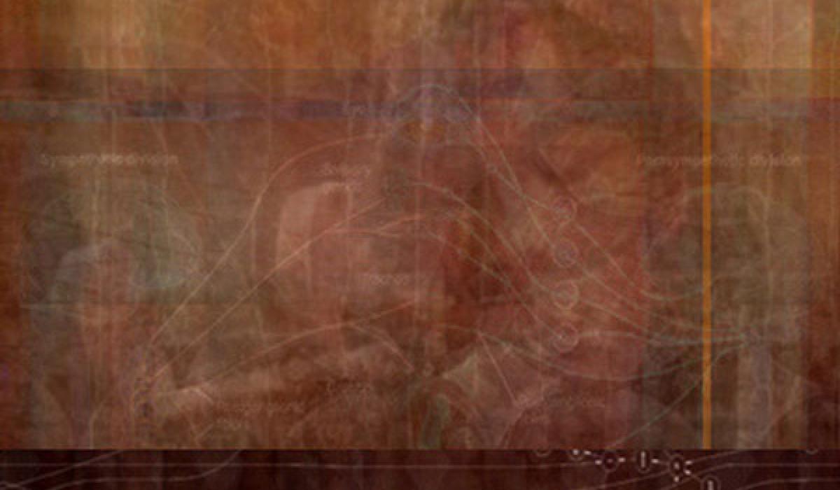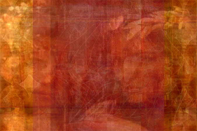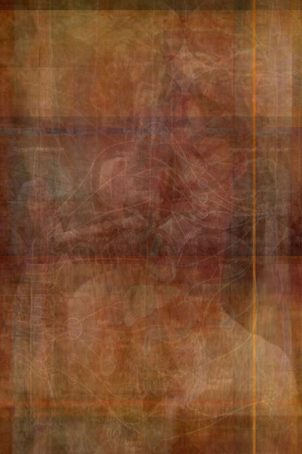 The paintings in Odyssey pandemOnium, featured throughout this issue, are conceptually situated within Nechvatal’s immersive noise theory. They not only reflect the virtual and the actual (what he calls viractual) but also his understanding of noise theory in an “immersive noise consciousness,” which “distorts and disturbs crisp signals of cultural communications.” Nechvatal adds that “They make use of a complicated turmoil produced from close exchanges within figure/ground relationships that challenge us to think outside of the normal system of human perception.” Classically rendered figures are embedded within a complex and subtle ground in such a manner that the normal figure/ground relationship more or less merges. Painted on suede-like velour canvas, the colors are dusty and muted, underlining the fugitive nature of the floating and migrating imagery. That double intricacy elicits a sense of being misplaced and adrift. The viewer’s eye must navigate the visual pandemonium in a way that suggests Odysseus’s wanderings. Present in the paintings is a partially hidden world of distant places and people, hints of classical sumptuousness and visual order, lost and at ideological drift, searching for scenic alternatives.