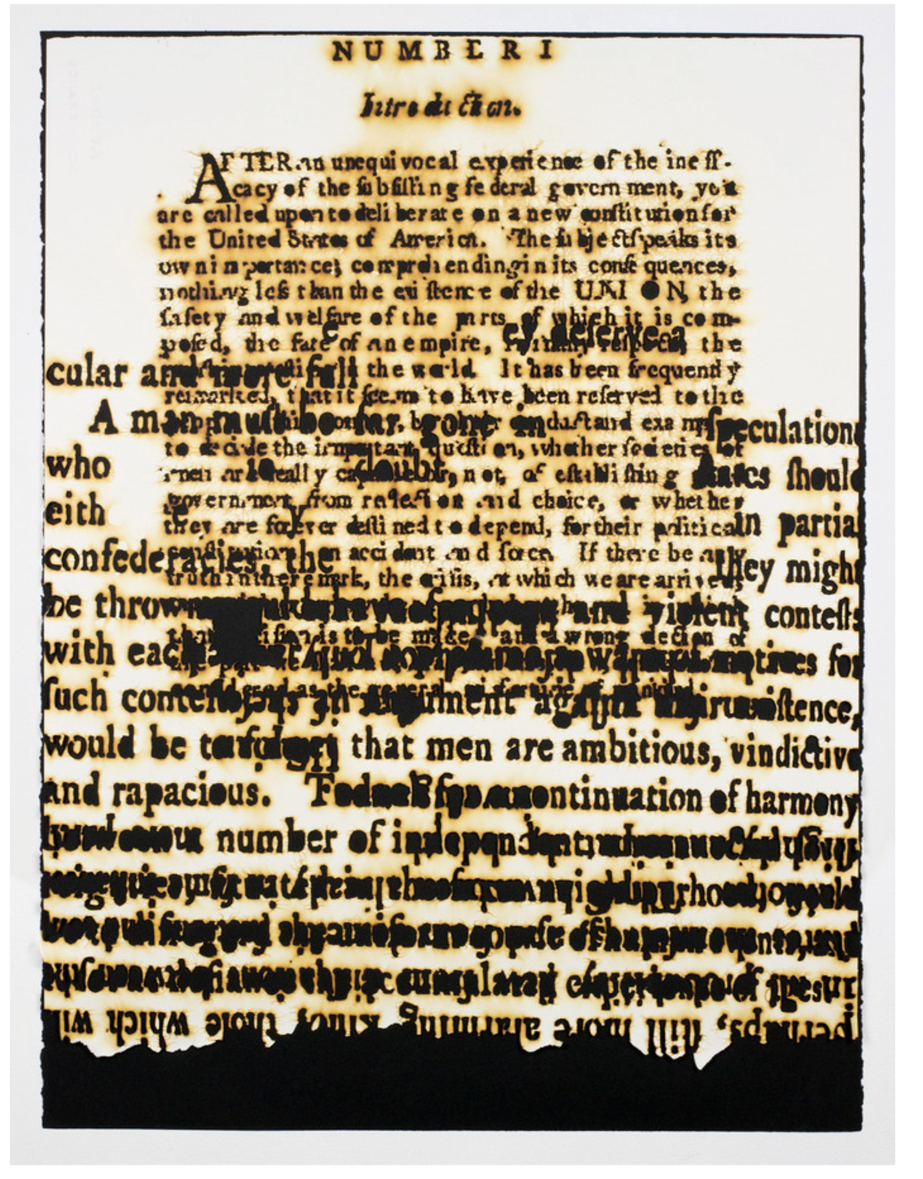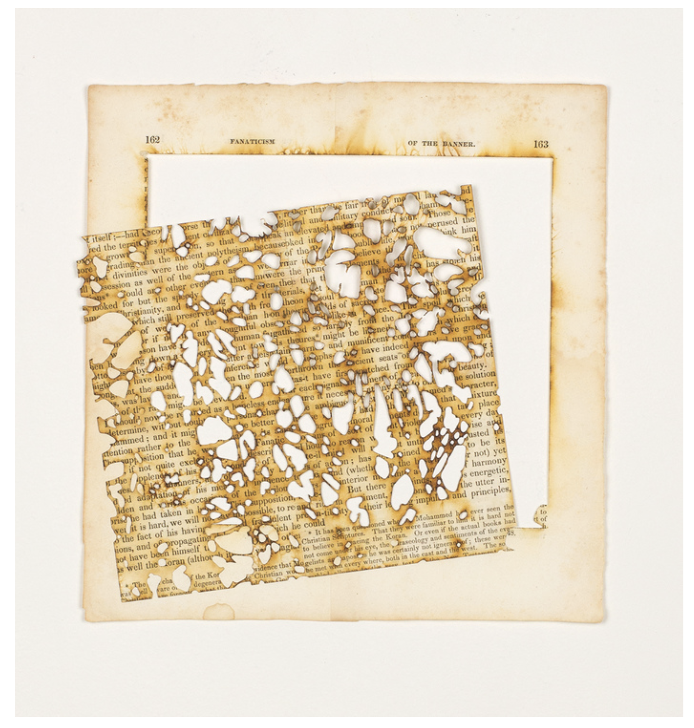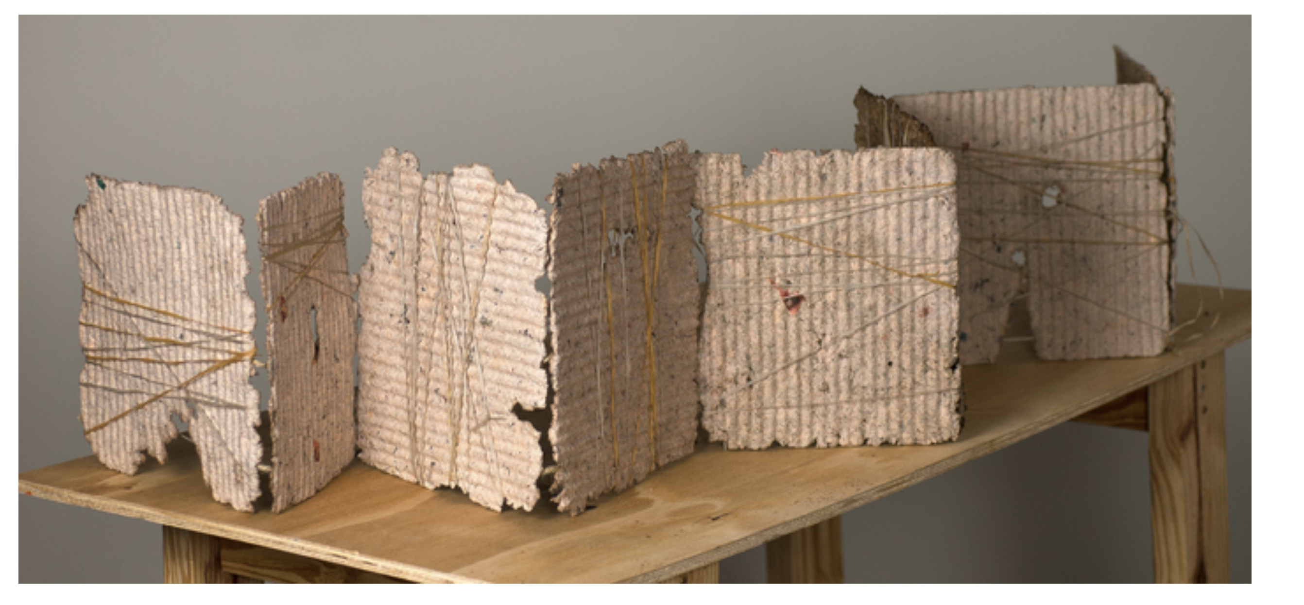 Originally a graphic designer working “on communicating economically,” her artwork evolved to “push the idea of economy to its limits, to the point of impeding communication and questioning how much must be left behind to retain the narrative” (see https://www.donnaruffart.com/statement).