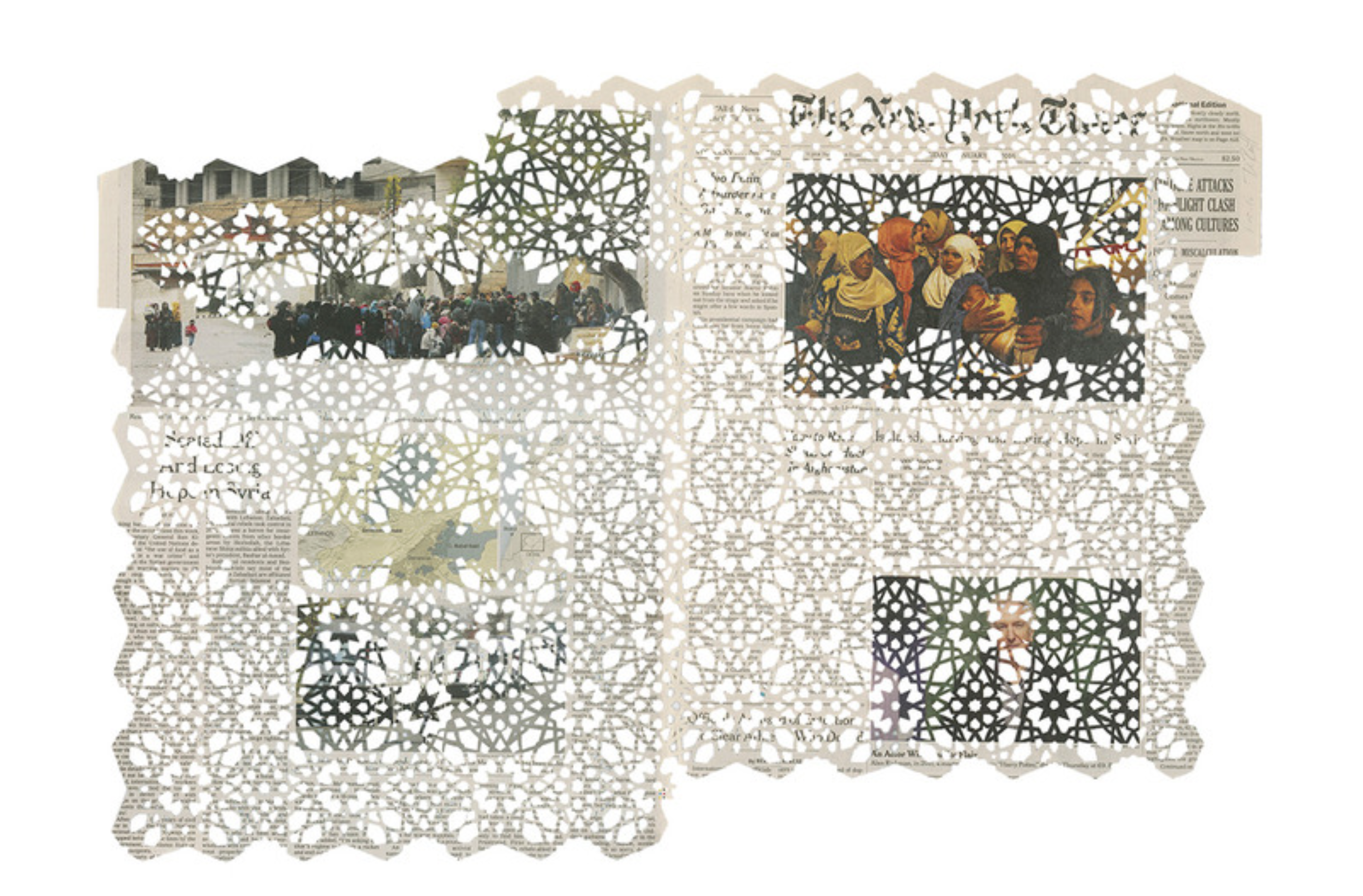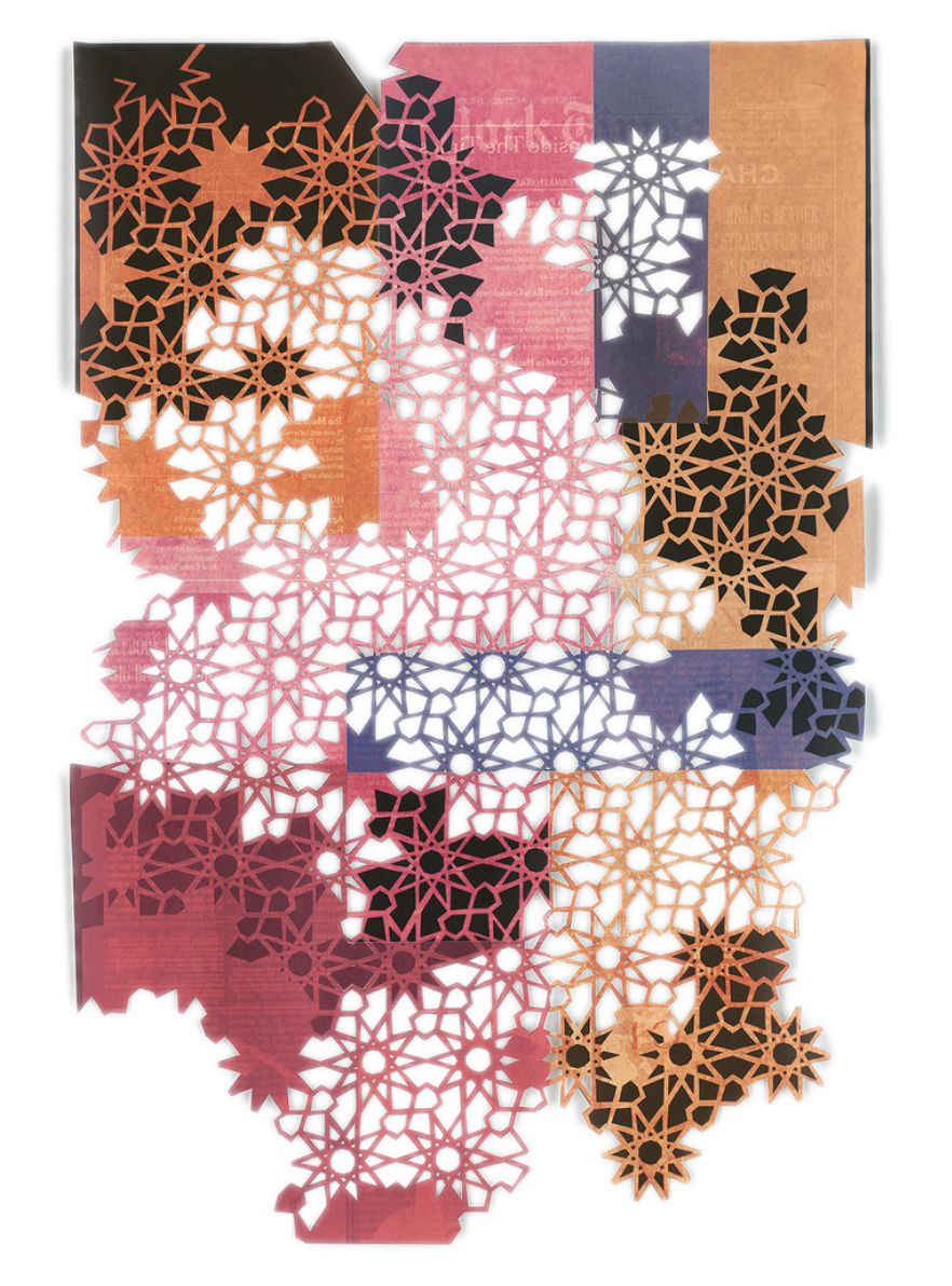 Working with newspapers and cutting patterns from vanishing print editions, Ruff aims to create a dialogue of positive and negative space to determine what image and text remains for the viewer to engage with. The lost and found information contrasting to its aesthetic beauty reflects a dissonance that today Ruff uses to capture the socialcultural-political impact of violence in our times.